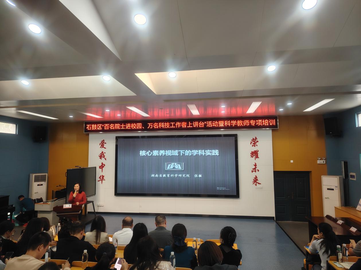10月16日,石鼓区"百名院士进校园、万名科技工作者上讲台"活动暨科学教师专项培训在华耀小学举行,吸引了全区中小学130余名分管科学教育的行政领导和科学教师积极参与。