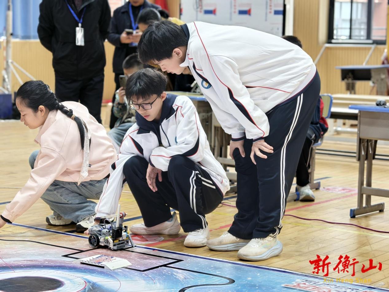 "我和我的小伙伴今天来比这个赛,我们在比赛过程中配合的特别好,简直天衣无缝,他在那里写代码,我在这里试机器人,很快就做完了。"衡山县实验中学一参赛学生对这次比赛期待满满。