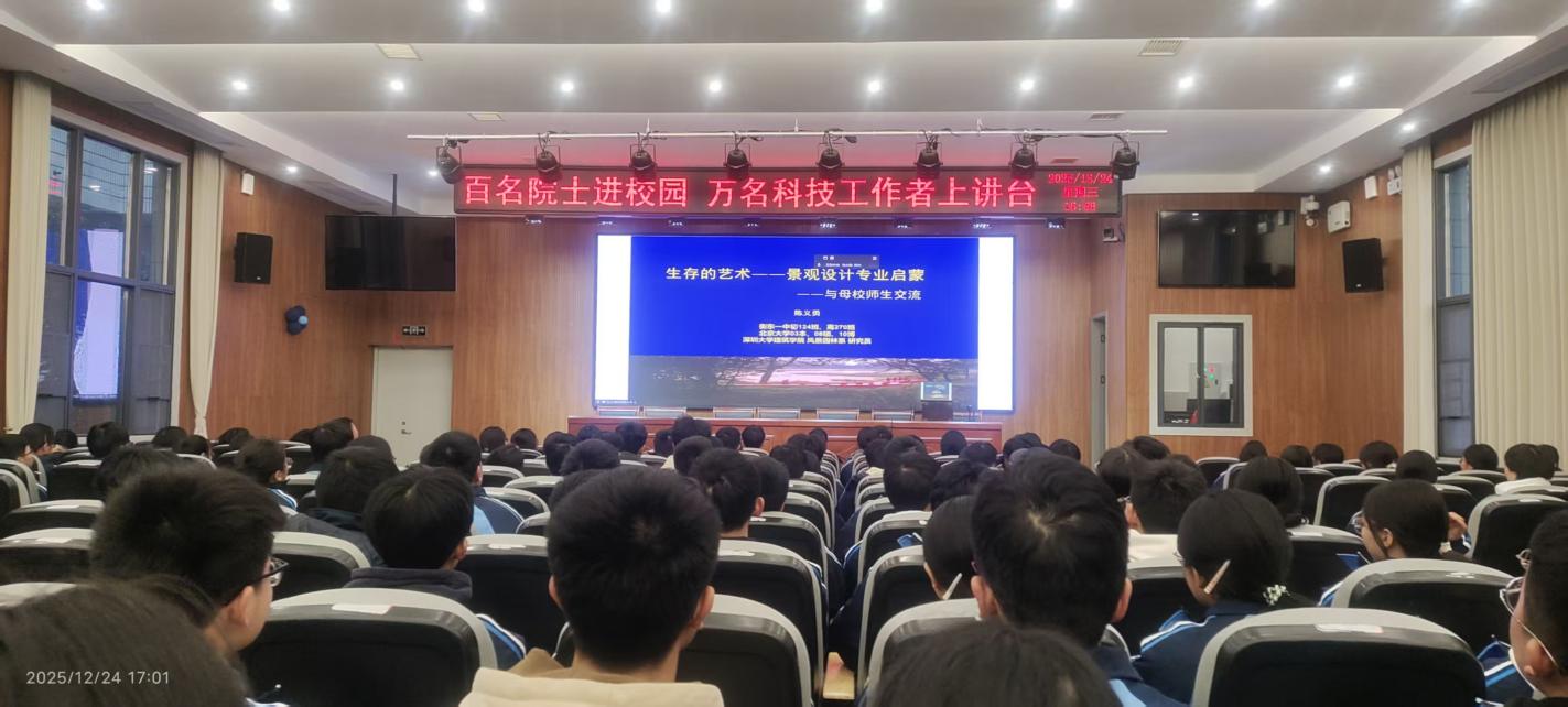为深入开展"百名院士进校园,万名科技工作者上讲台活动",衡东县一中创新教学模式,于2026年元月5日下午,特邀衡东一中校友、深圳大学建筑与城市规划学院陈副教授通过网络视频,为母校学子带来了一堂兼具知识性与启发性的景观设计启蒙课,以"生存的艺术"为核心,解锁人与自然和谐共生的密码。