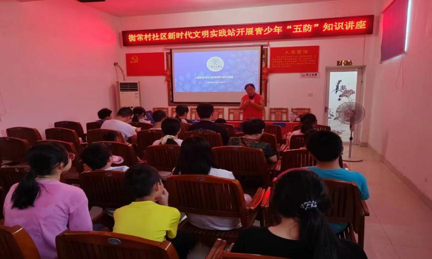 "五防"教育护"未"成长。社区邀请了衡阳市蓝丝带志愿者协会理事、五防安全教育讲师前来授课。课程围绕"防灾害、防意外、防性侵、防拐卖、防校园暴力"五个方面,通过游戏互动等方式帮助孩子们了解"五防"安全,学习正确选择处理紧急情况的措施,增强自我安全防范意识。