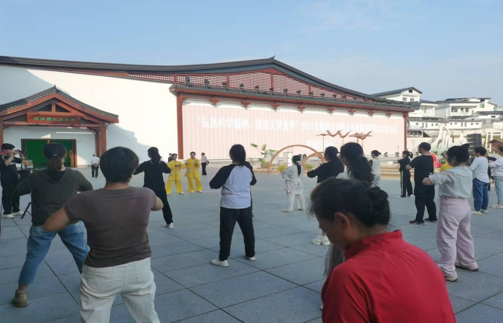 活动邀请了松木经济开发区管委会原一级调研员、国家健身气功一级裁判员、国家太极拳一级裁判员廖德萍给大家现场授课,在近两个小时的练习中,给在场的女性们科普在日常生活中如何进行身体保健,预防疾病、强身健体,带领大家一起感受健身气功·八段锦,引导养生功十二法的健身体验。