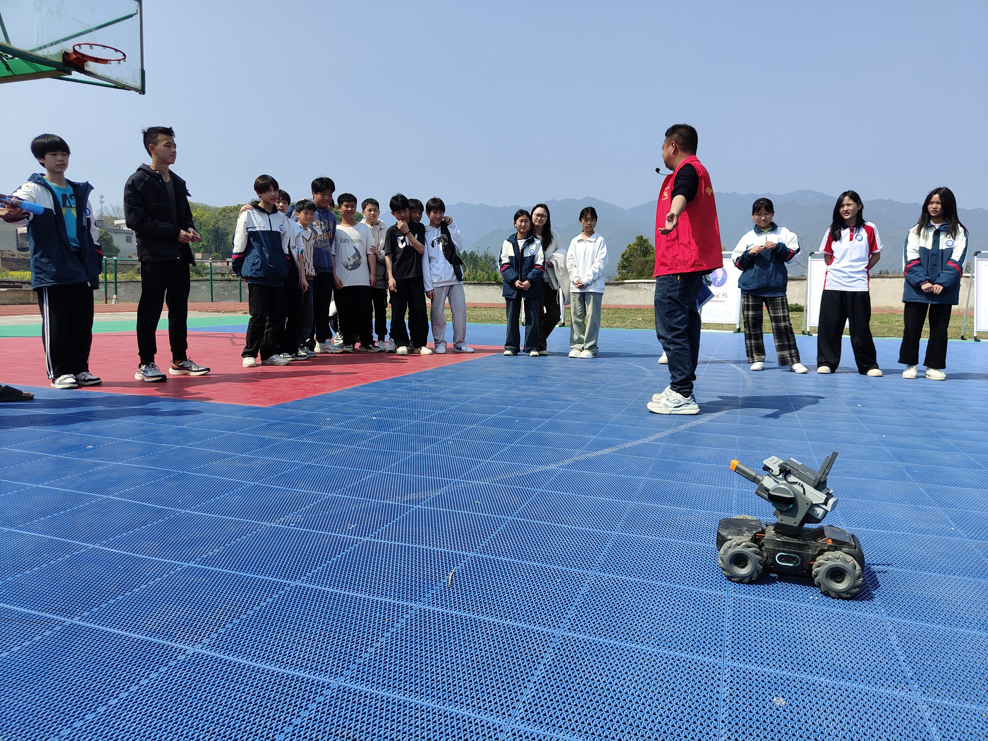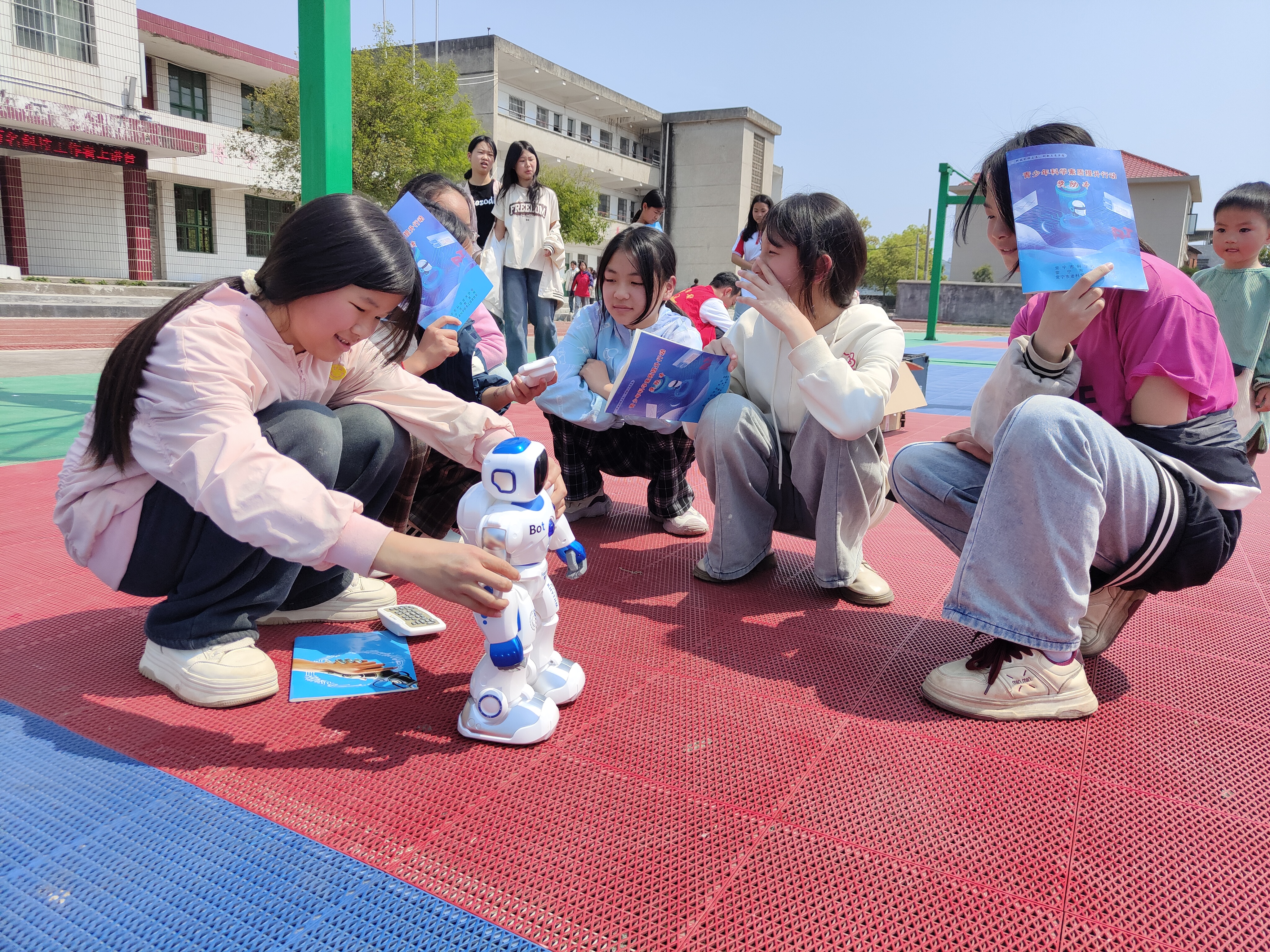 "同学们,大家知道中国的人形机器人有哪些吗?回答正确有课本奖励喔!"3月24日上午,常宁市西岭镇中学的篮球场上一场户外科普盛宴拉开帷幕,学生们一个个争先恐后与科普志愿者进行问答互动,同学们面对科普志愿者的问题,对答如流,争相获取奖励,场面热烈非凡。常宁市老年科技工作者领导小组组长黎才发,市科协党组书记陈青观摩了整场活动的开展。