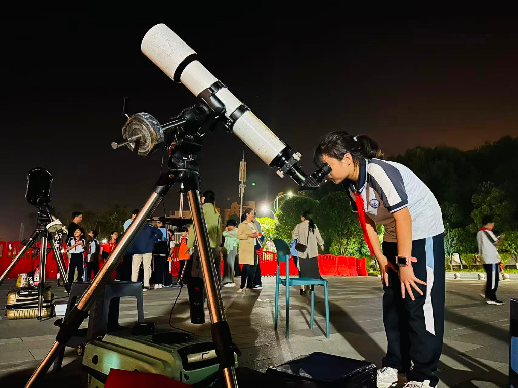 9月26日晚,全国首家火星主题科普馆——南岳祝融探火太空体验馆前人头攒动,300余名天文爱好者齐聚于此,观摩“问问机甲天团”科普表演秀,聆听“宇宙的尺度”科普讲座,并在湖南省天文协会专家的指导下,通过专业望远镜领略万顷星瀚。来自金月完小四年级六班的学生周子茗兴奋的告诉笔者“超级开心,不仅认清了星座,还学会了如何分辨行星和恒星,它让我对外太空有了更大的好奇心。我的理想就是当宇航员,去探索宇宙的奥秘”。