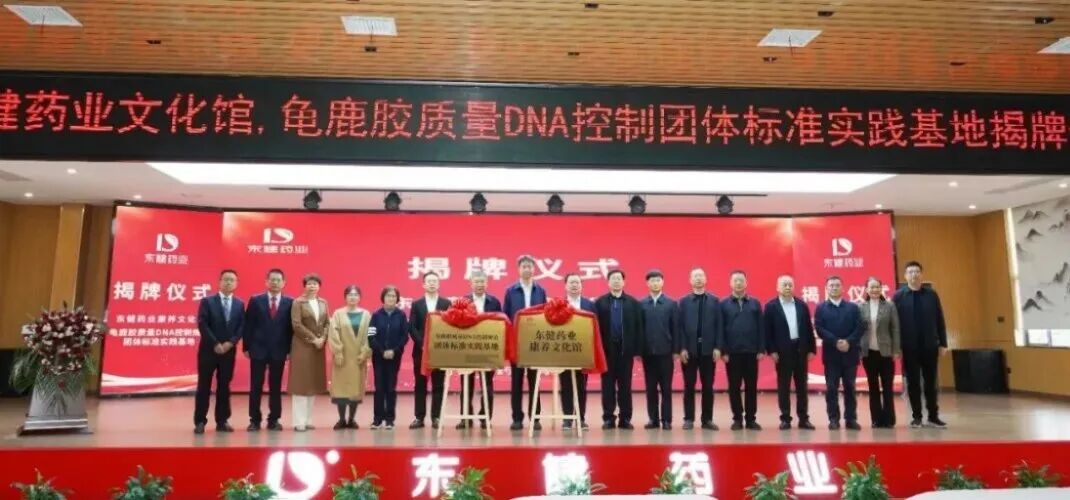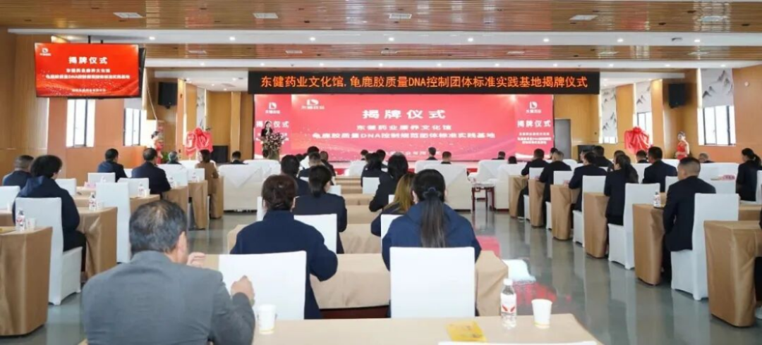 衡阳市人民政府副市长谢宏与东健药业董事长王林共同为东健药业康养文化馆揭牌;湖南省中药材产业协会秘书长扬子墨与山东省农业科学院研究员步迅共同为龟鹿胶质量DNA控制规范团体标准实践基地揭牌。两块沉甸甸的牌匾,承载着文化的厚重与科技的锋芒,正式掀开了东健药业发展的新纪元。